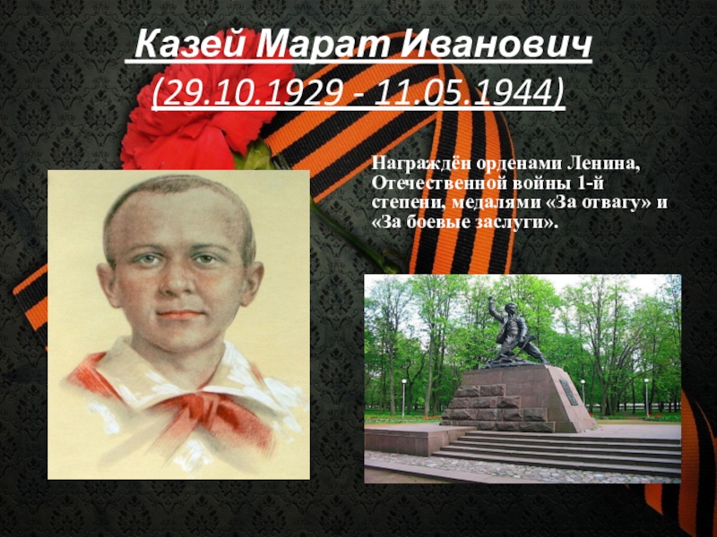 Слайд 10 Казей Марат Иванович (29.10.1929 - 11.05.1944)
