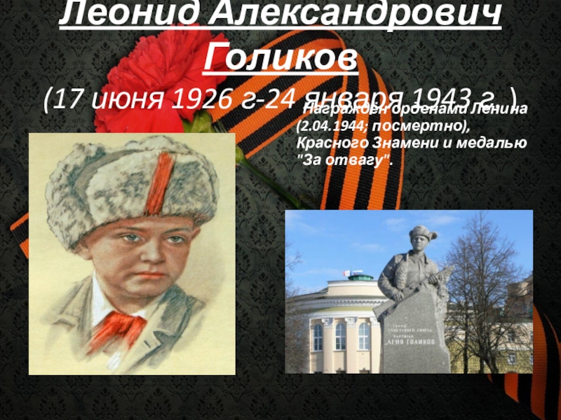 Слайд 8Леонид Александрович Голиков (17 июня 1926 г-24 января 1943 г. )