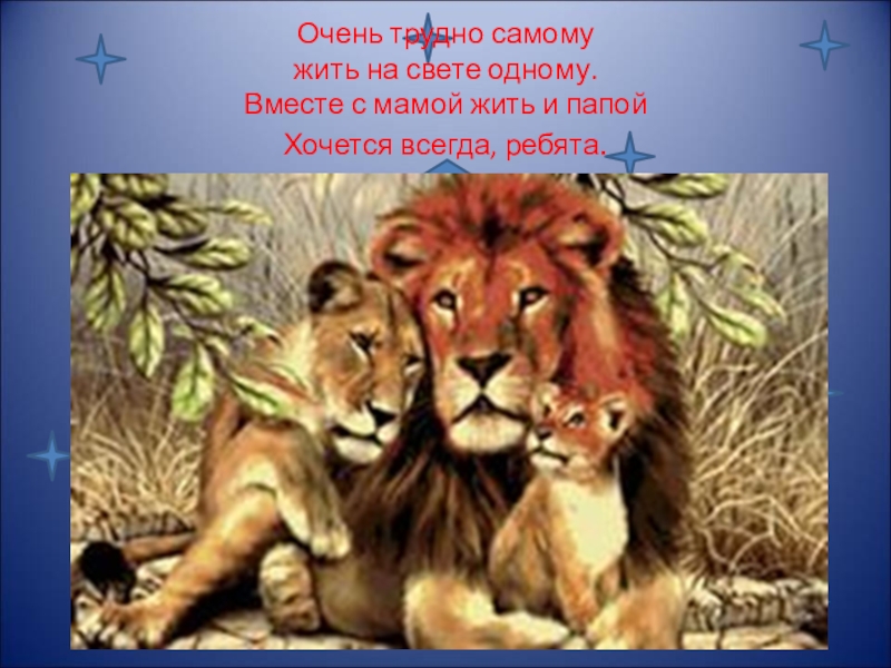 Очень трудно самому жить на свете одному. Вместе с мамой жить и папой Хочется