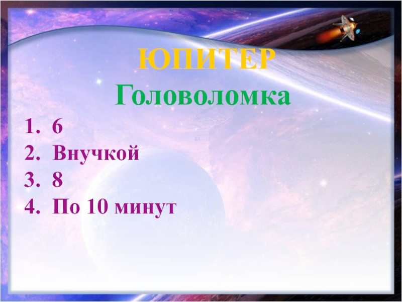 ЮПИТЕР Головоломка 1. 6 2. Внучкой 3. 8 4. По 10 минут