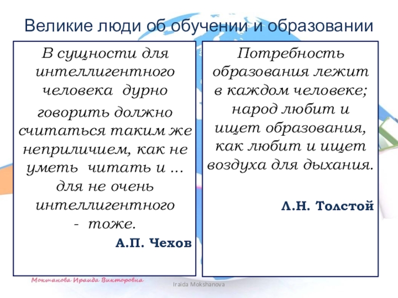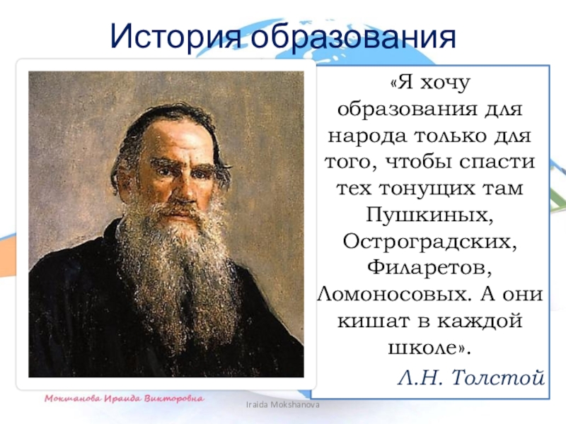 Потребность образования лежит в каждом человеке; народ любит и ищет образования, как любит и ищет воздуха для дыхания.