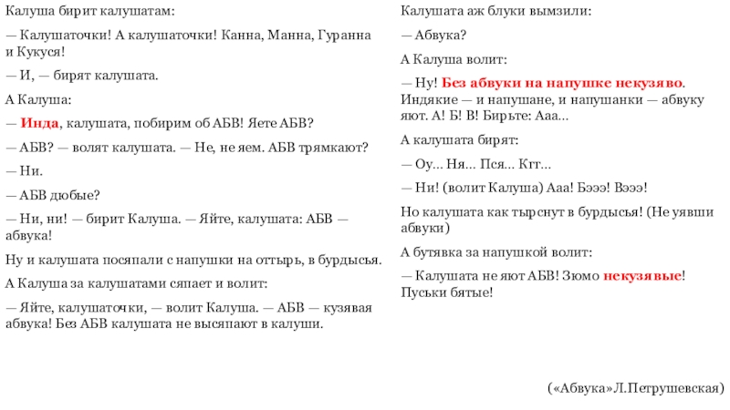 («Абвука»Л.Петрушевская)