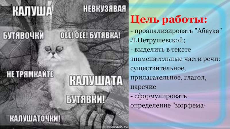 Но калушата как тырснут в бурдысья! (Не уявши абвуки)
