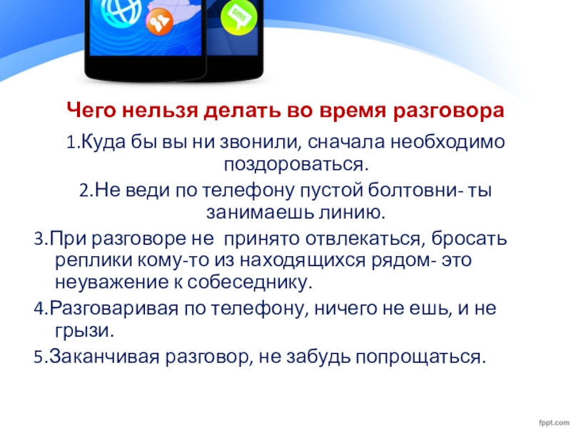 2.Не веди по телефону пустой болтовни- ты занимаешь линию.