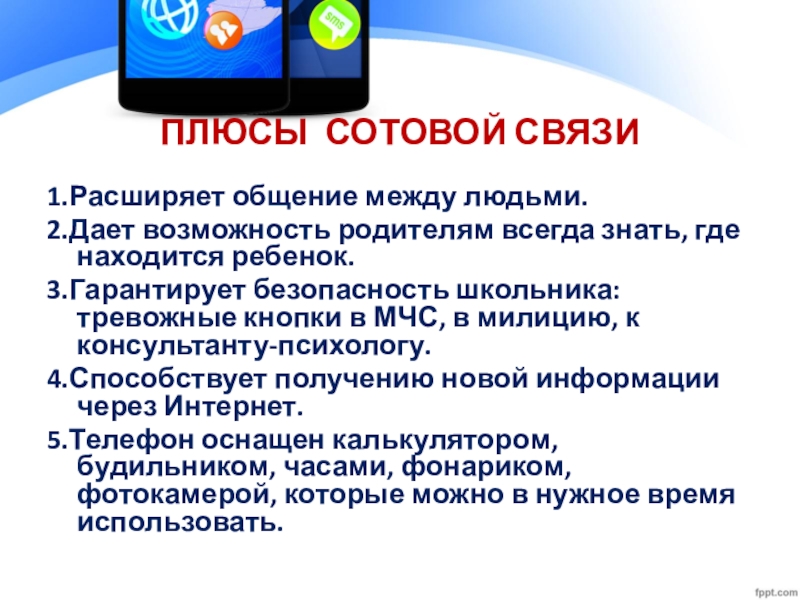 Слайд 29ПЛЮСЫ СОТОВОЙ СВЯЗИ