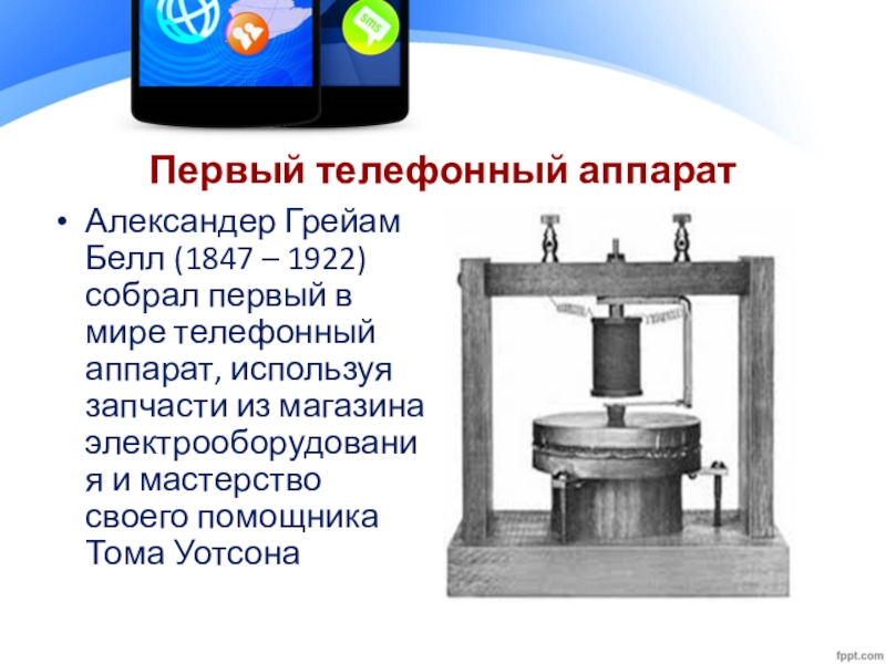 Слайд 8Первый телефонный аппарат