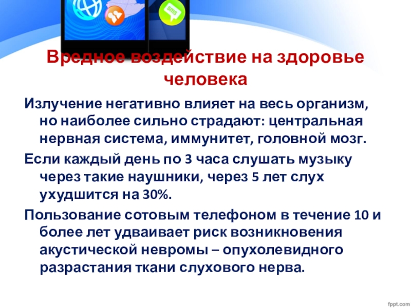 Слайд 31Вредное воздействие на здоровье человека