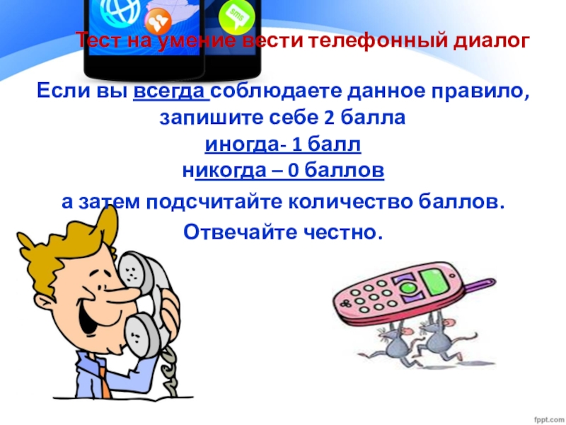 Слайд 25Тест на умение вести телефонный диалог