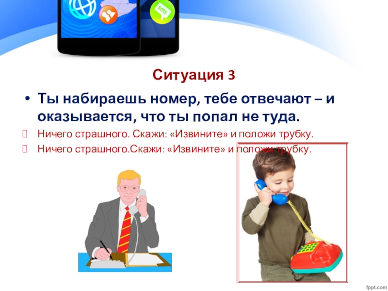 отвечайте вежливо тому, кто позвонил ошибочно;