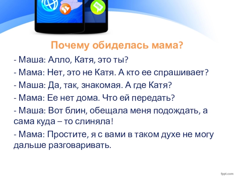 Слайд 13Мама: Алло, слушаю вас.