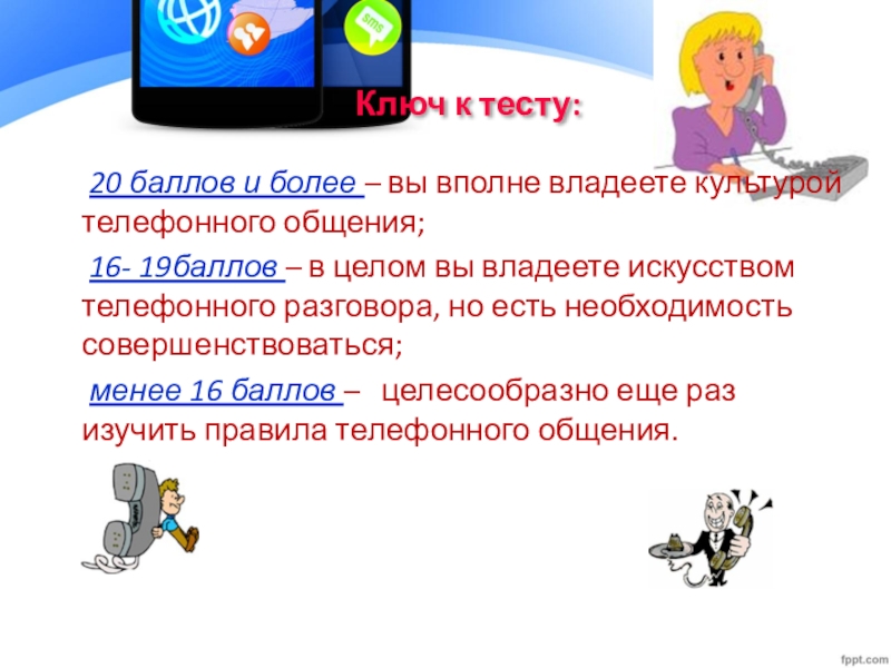менее 16 баллов – целесообразно еще раз изучить правила телефонного общения.