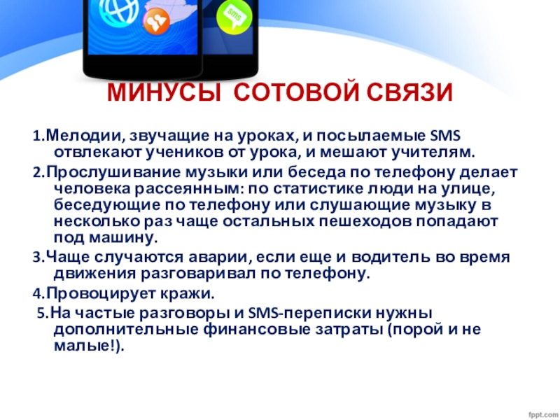 5.На частые разговоры и SMS-переписки нужны дополнительные финансовые затраты (порой и не малые!).
