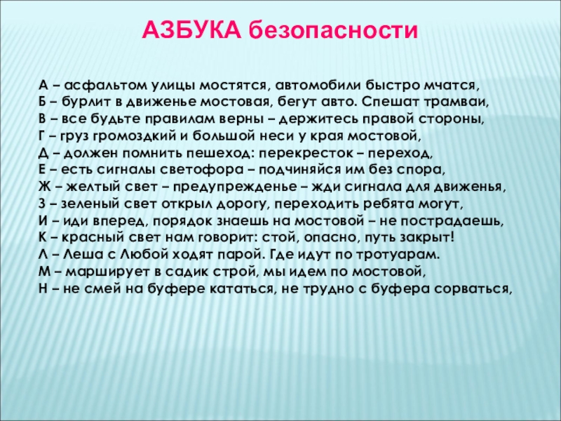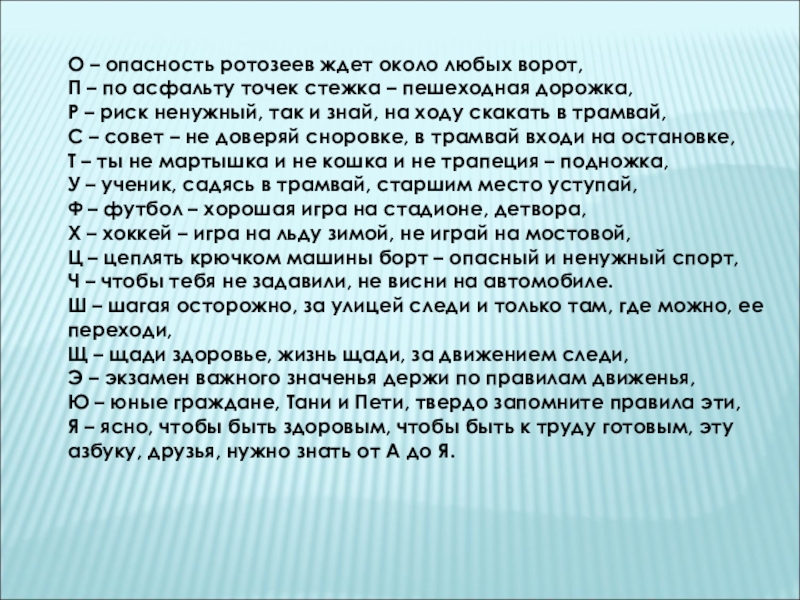 Ю – юные граждане, Тани и Пети, твердо запомните правила эти,