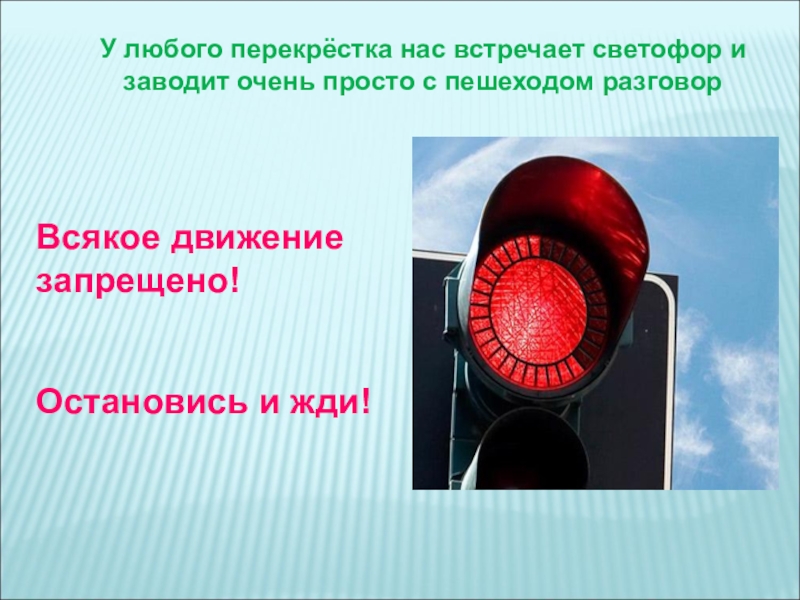 К – красный свет нам говорит: стой, опасно, путь закрыт!