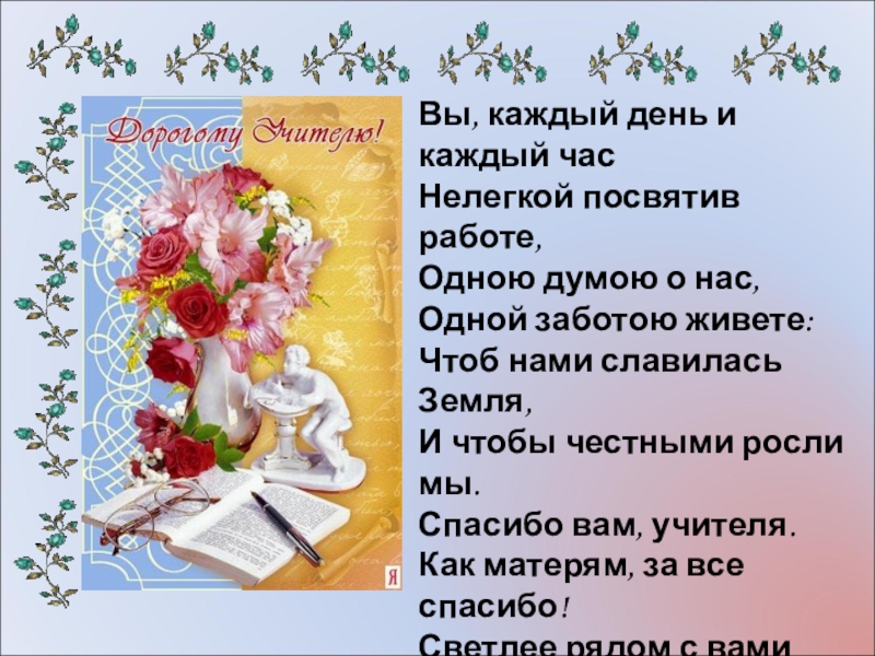 тёплое-"учитель" Всегда заставит вспомнить что-то Родное, близкое тебе... В двадцатом веке и в двухсотом- Учитель вечен на земле