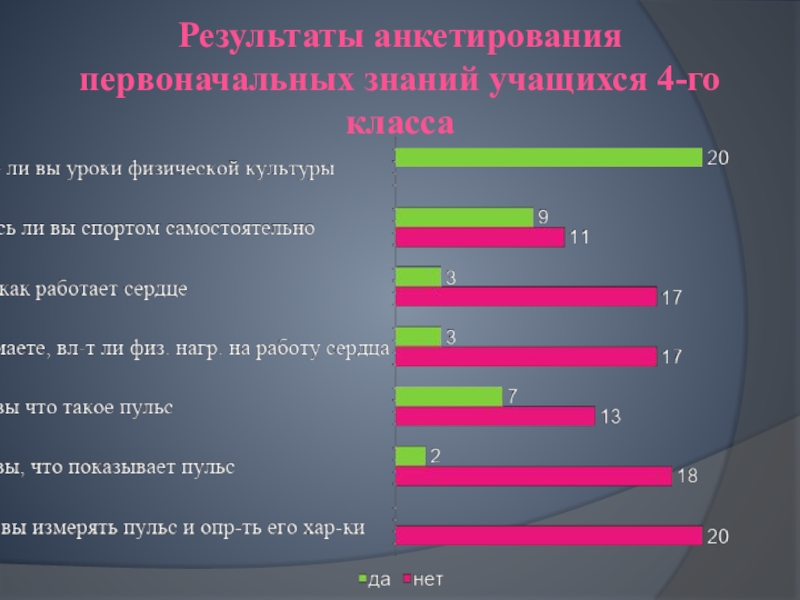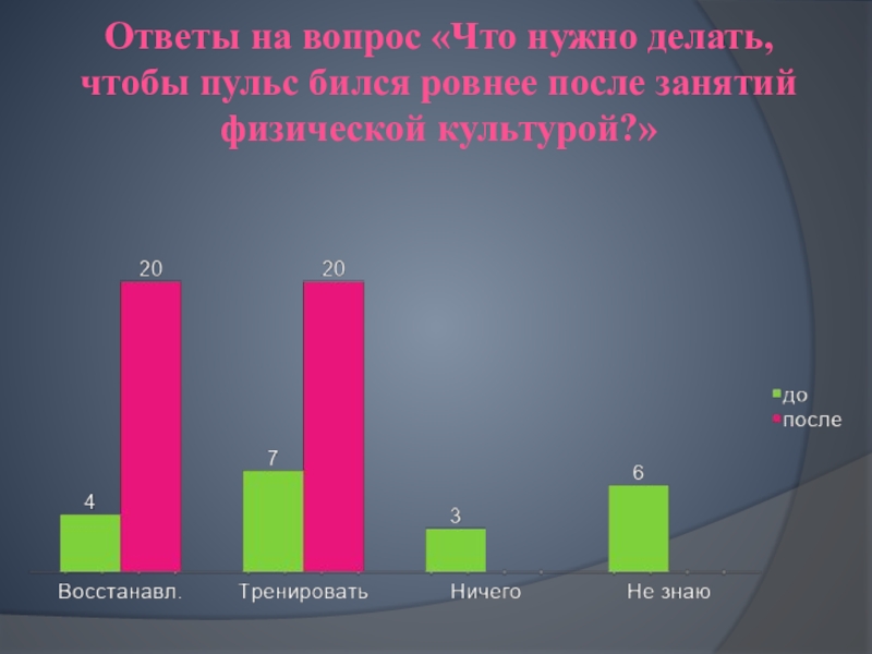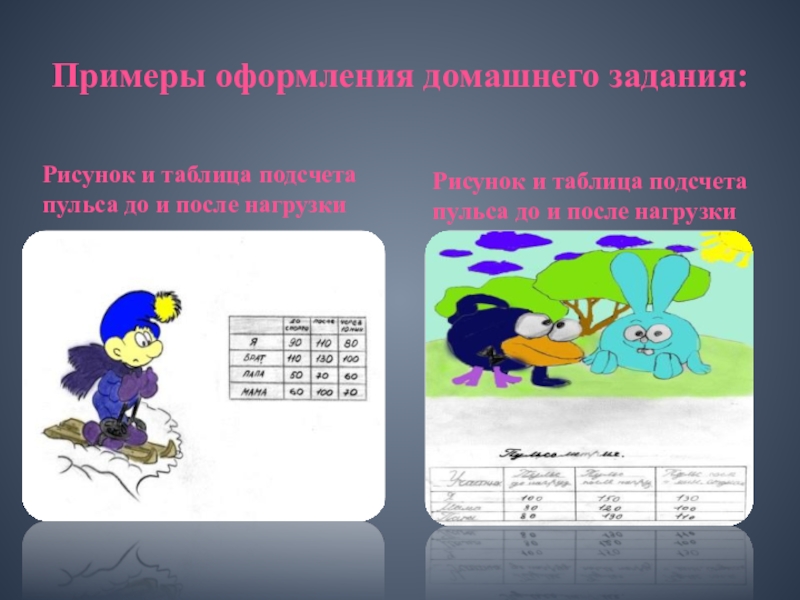 Рисунок и таблица подсчета пульса до и после нагрузки