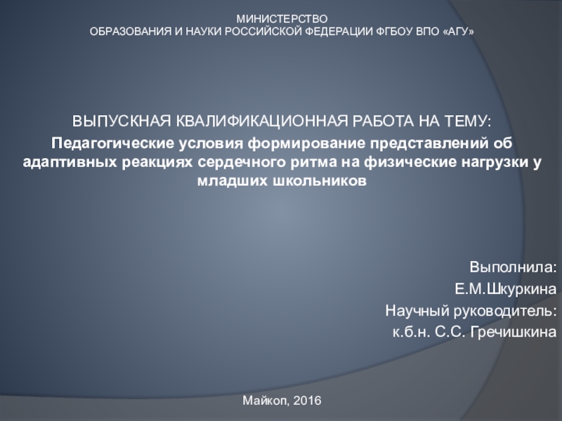 ОБРАЗОВАНИЯ И НАУКИ РОССИЙСКОЙ ФЕДЕРАЦИИ ФГБОУ ВПО «АГУ»