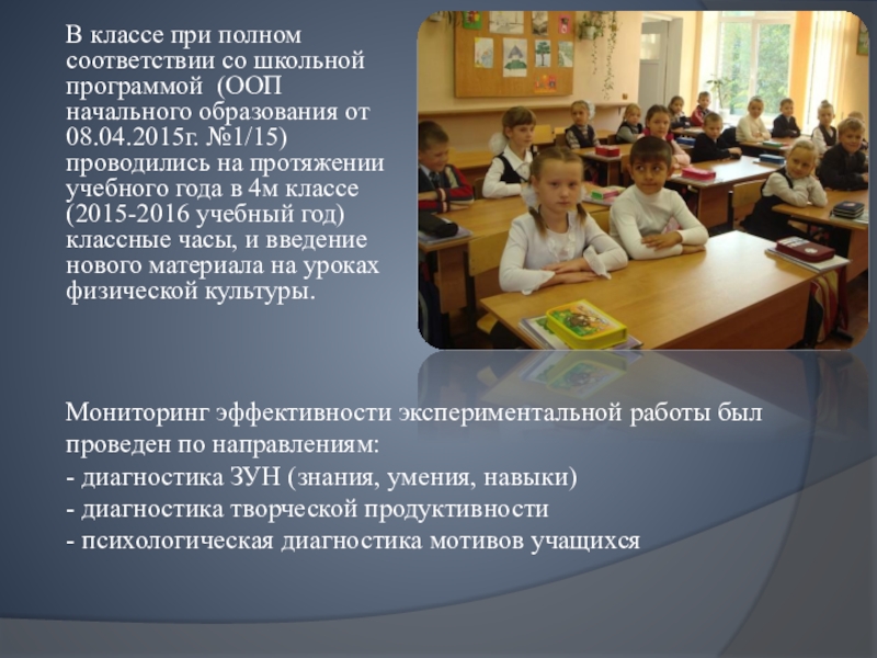 Мониторинг эффективности экспериментальной работы был проведен по направлениям: