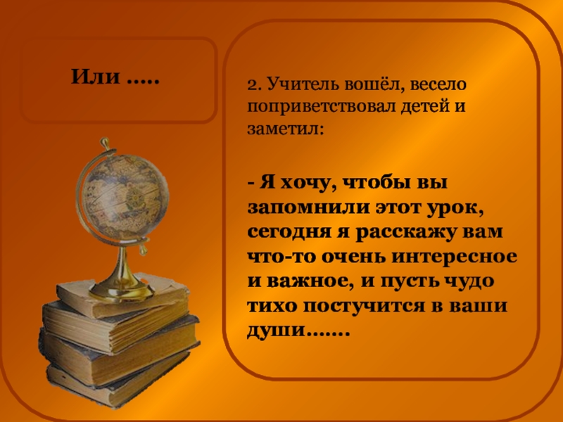 чтобы вы запомнили этот урок, сегодня я расскажу вам что-то очень интересное и важное, и пусть чудо тихо постучится в ваши души…….