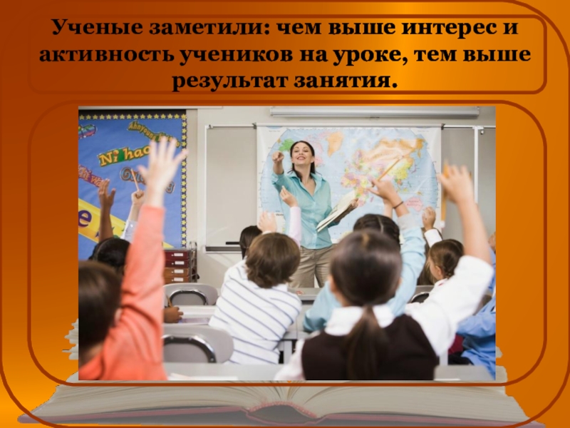 Слайд 8Ученые заметили: чем выше интерес и активность учеников на уроке, тем