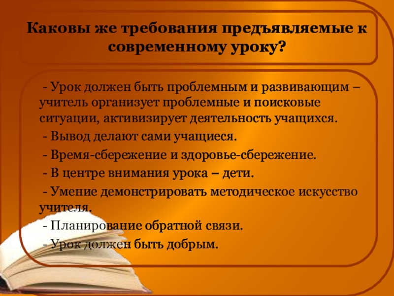 Слайд 13Каковы же требования предъявляемые к современному уроку?