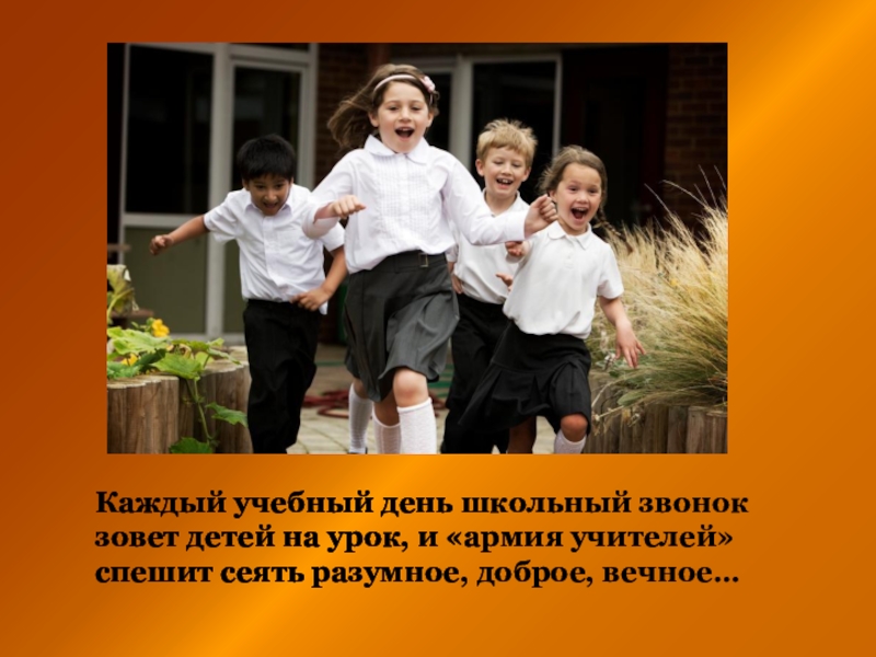 Слайд 2Каждый учебный день школьный звонок зовет детей на урок, и «армия