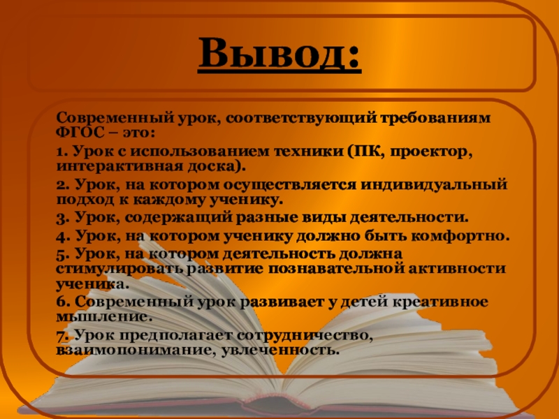 7. Урок предполагает сотрудничество, взаимопонимание, увлеченность.