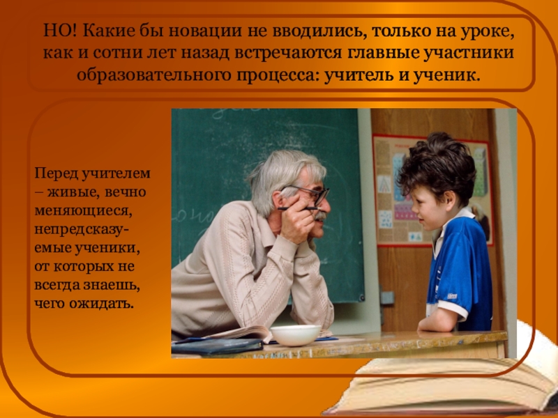 Перед учителем – живые, вечно меняющиеся, непредсказу-емые ученики, от которых не всегда знаешь, чего ожидать.