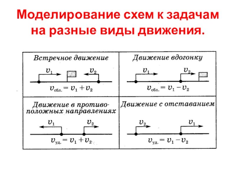 Слайд 12Моделирование схем к задачам на разные виды движения.