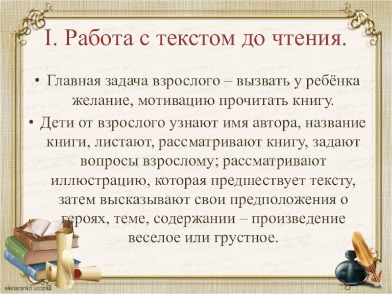 Слайд 14I. Работа с текстом до чтения.