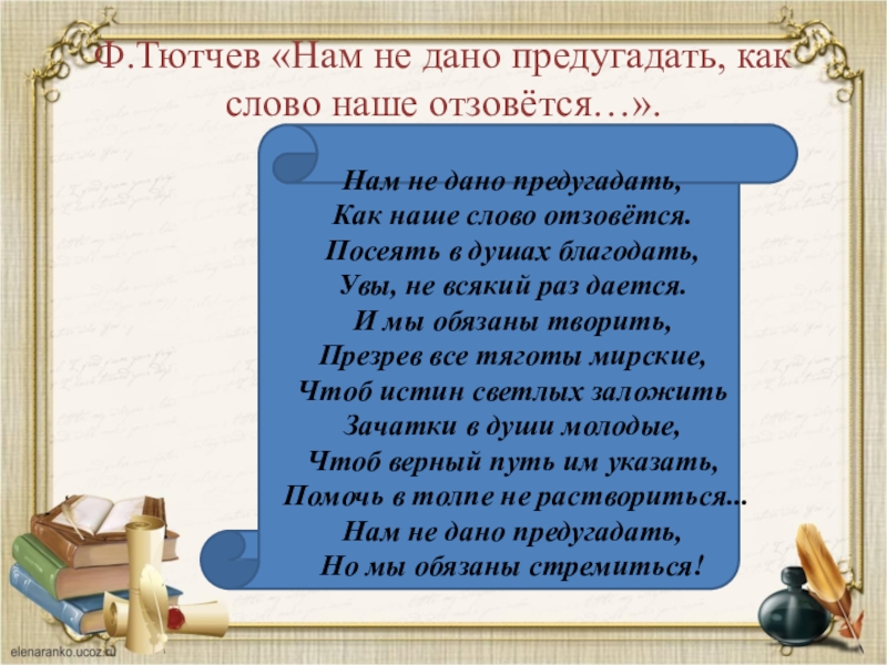Ф.Тютчев «Нам не дано предугадать, как слово наше отзовётся…».