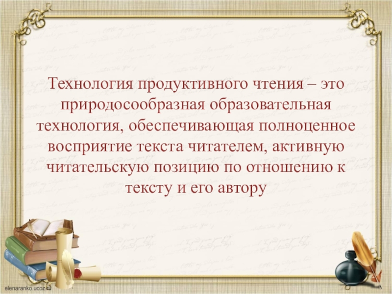 Слайд 12Технология продуктивного чтения – это природосообразная образовательная технология, обеспечивающая полноценное восприятие