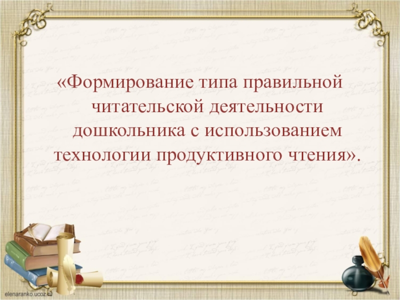 «Формирование типа правильной читательской деятельности дошкольника с использованием технологии продуктивного чтения».