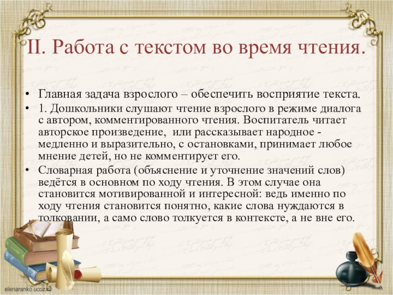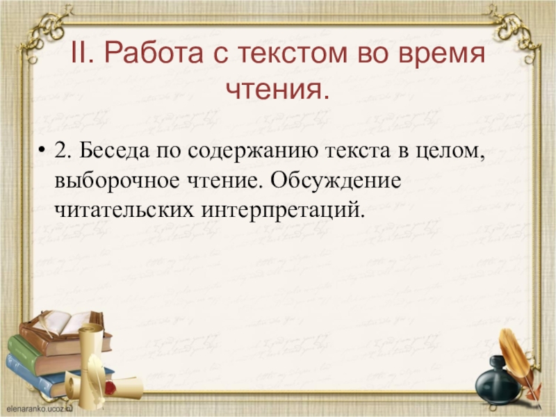 II. Работа с текстом во время чтения.