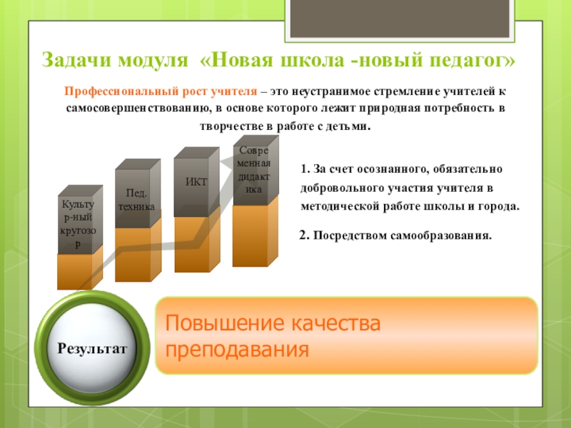 Профессиональный рост учителя – это неустранимое стремление учителей к самосовершенствованию, в основе которого лежит природная потребность в творчестве в работе с детьми.