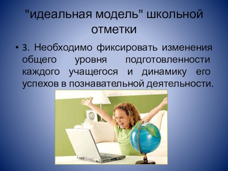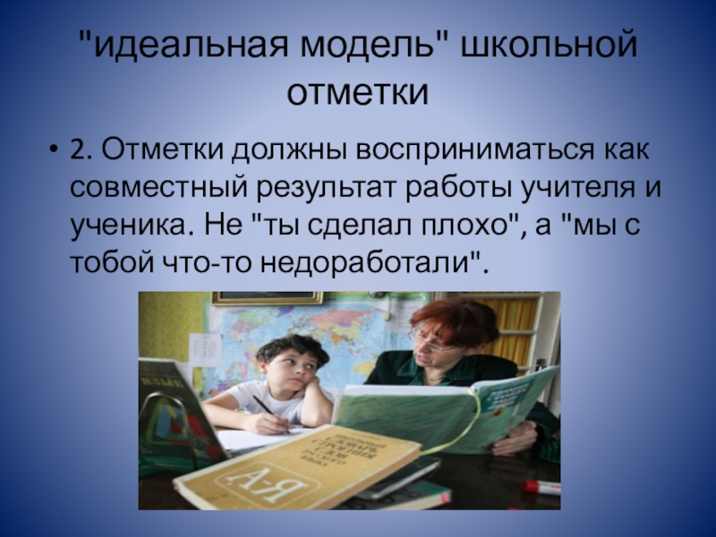 я буду выглядеть в глазах коллег, администрации, а думать о том, что ребенок будет делать сегодня, завтра после этой отметки: возьмется ли за книгу, станет трудолюбивее или эта отметка не будет стимулировать его к работе, оставит равнодушным. Сегодня, наверное, именно в этом заключается объективность и справедливость отметки.