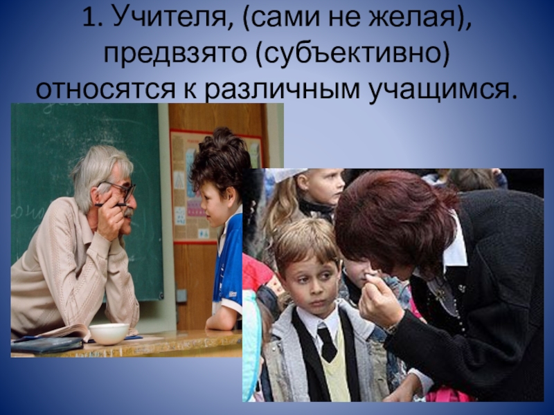 Слайд 71. Учителя, (сами не желая), предвзято (субъективно) относятся к различным учащимся.
