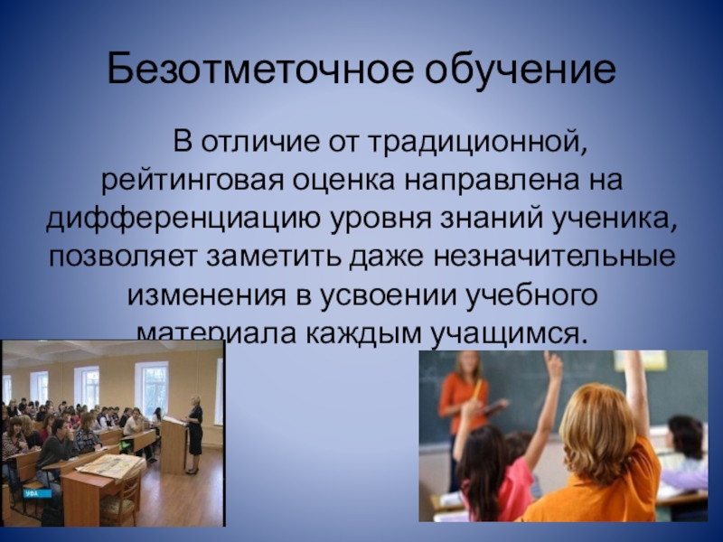 В отличие от традиционной, рейтинговая оценка направлена на дифференциацию