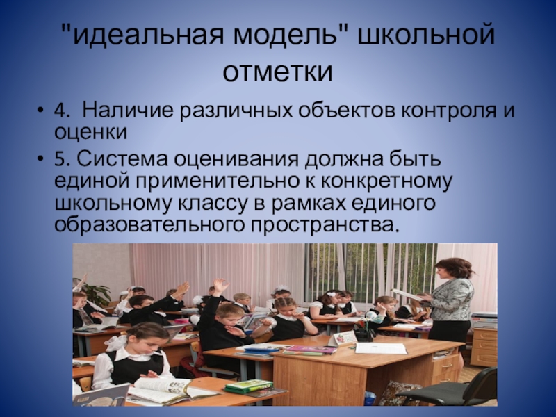 оценивания должна быть единой применительно к конкретному школьному классу в рамках единого образовательного пространства.