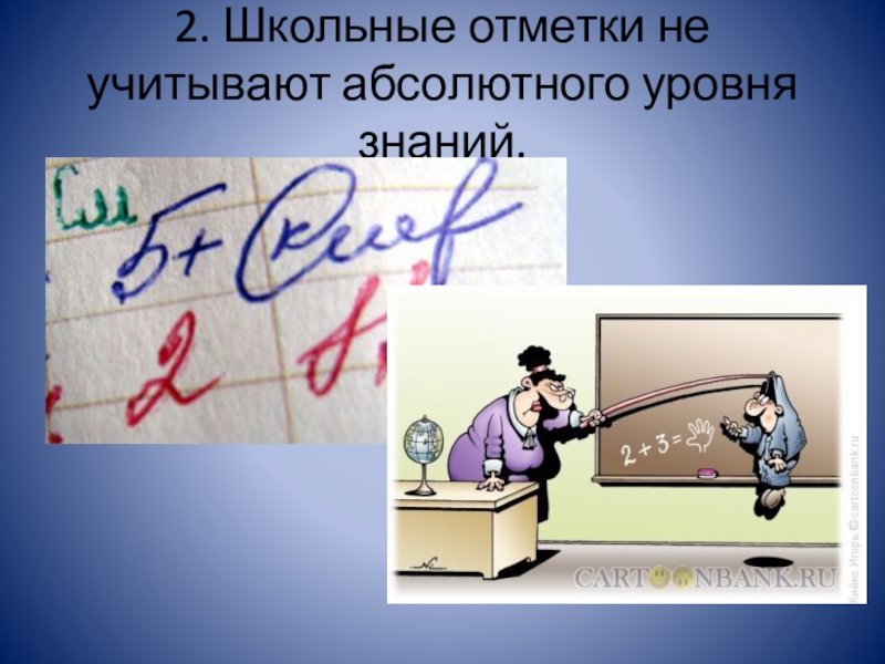 Слайд 82. Школьные отметки не учитывают абсолютного уровня знаний.