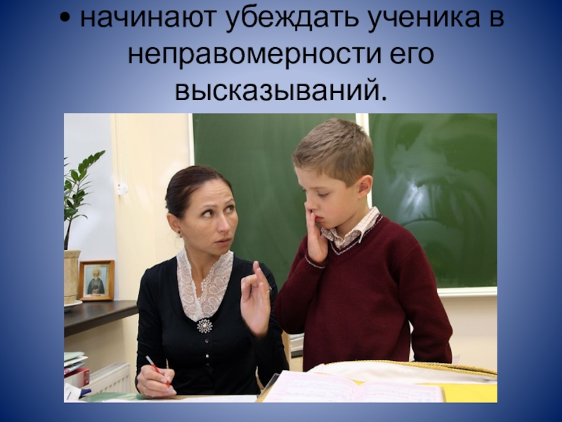 Слайд 4• начинают убеждать ученика в неправомерности его высказываний.