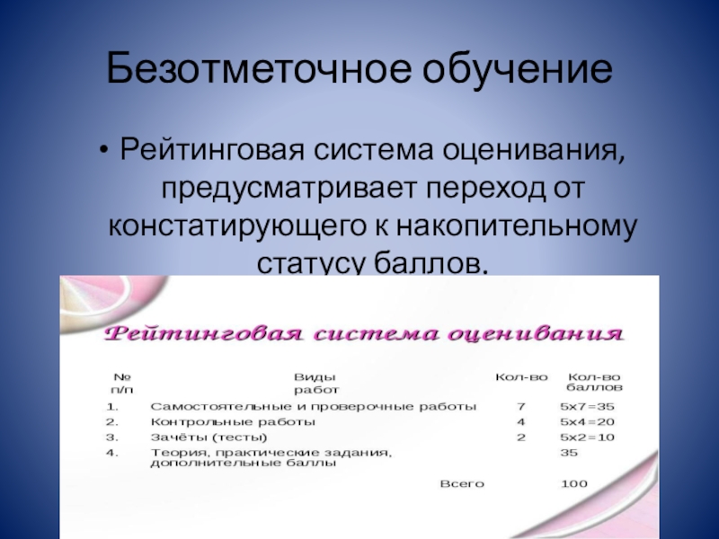 Рейтинговая система оценивания, предусматривает переход от констатирующего к накопительному
