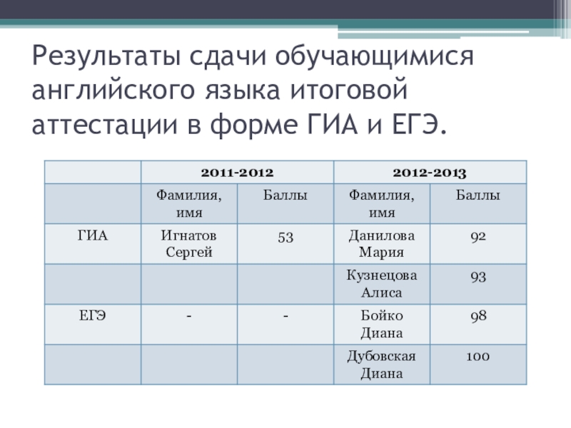 Слайд 8Результаты сдачи обучающимися английского языка итоговой аттестации в форме ГИА и