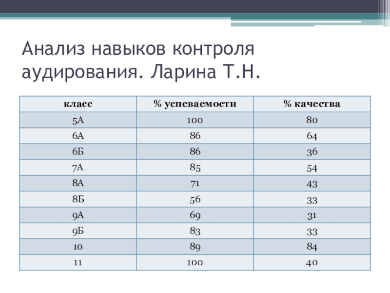 Слайд 5Анализ навыков контроля аудирования. Ларина Т.Н.