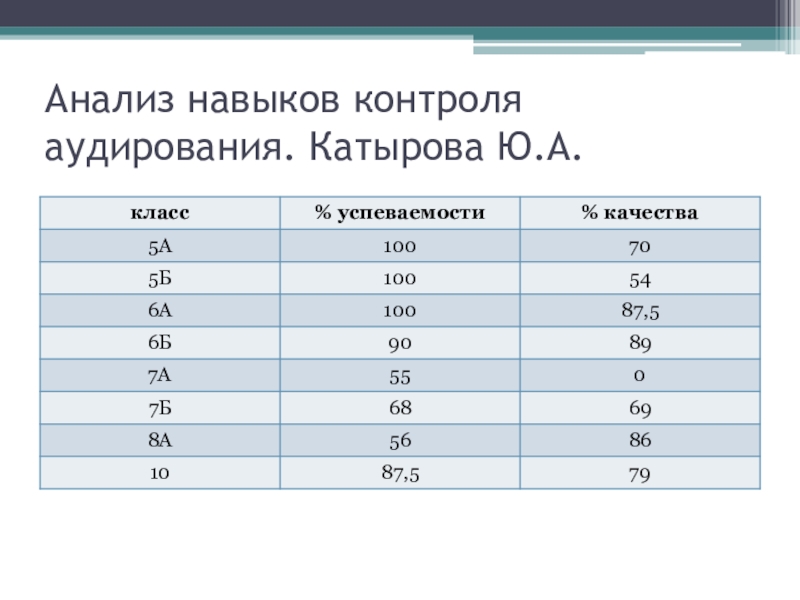 Слайд 6Анализ навыков контроля аудирования. Катырова Ю.А.