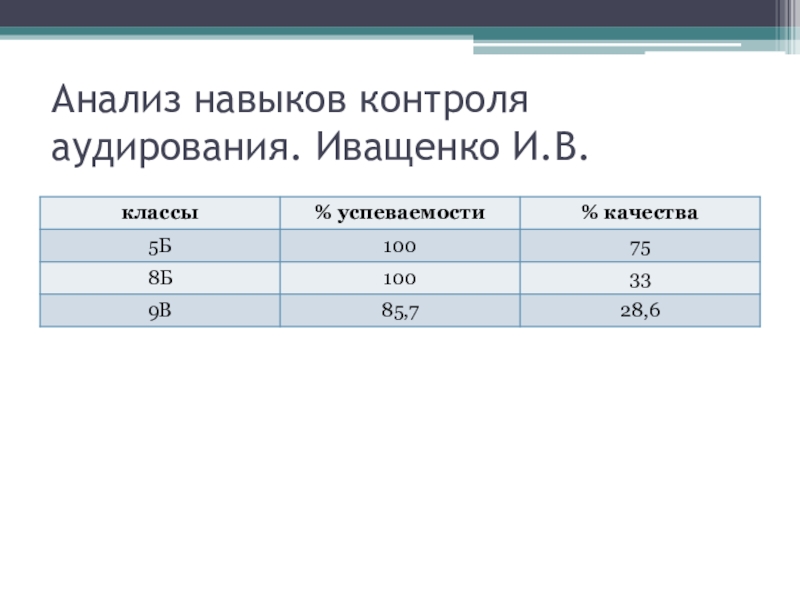 Слайд 7Анализ навыков контроля аудирования. Иващенко И.В.