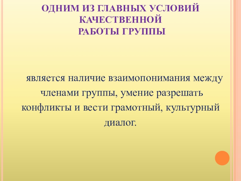 Слайд 9ОДНИМ ИЗ ГЛАВНЫХ УСЛОВИЙ КАЧЕСТВЕННОЙ