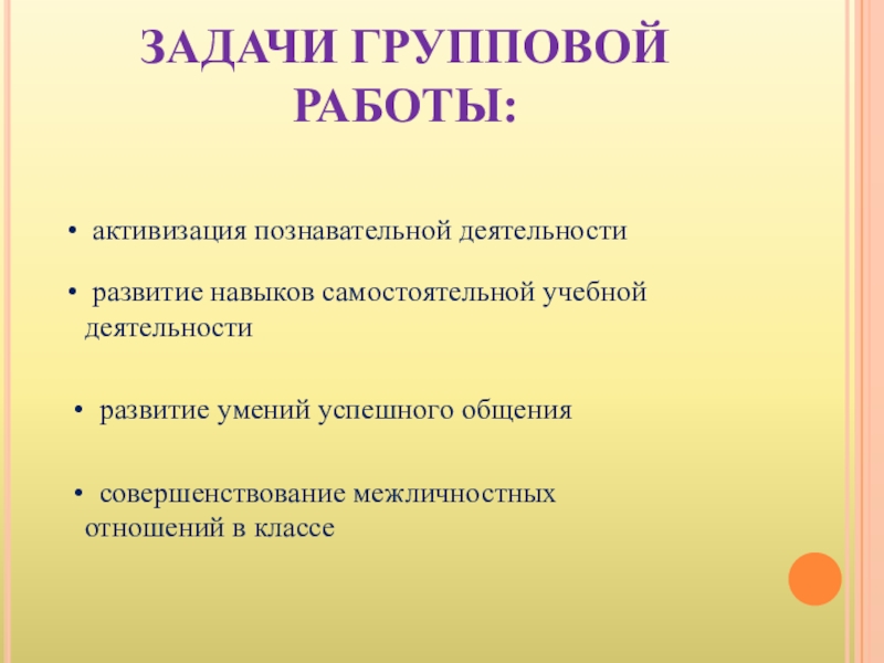 Слайд 4ЗАДАЧИ ГРУППОВОЙ РАБОТЫ: