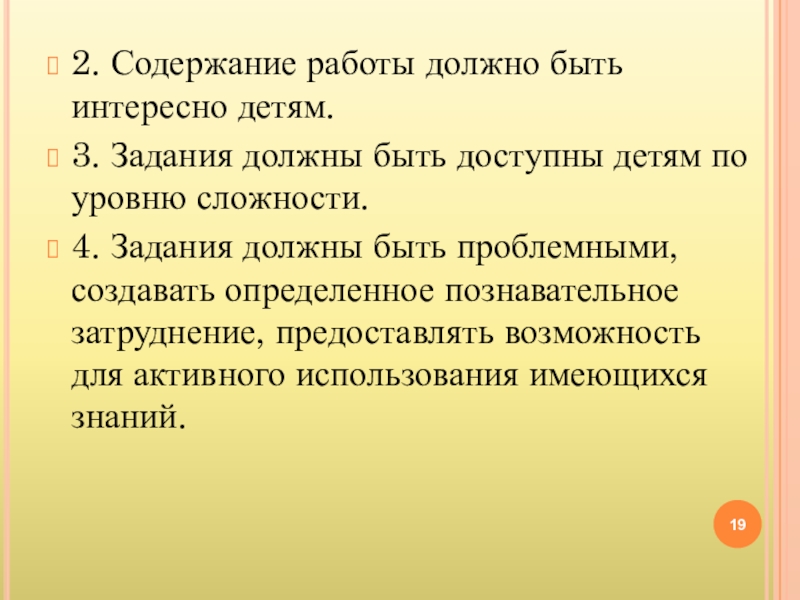 Слайд 192. Содержание работы должно быть интересно детям.