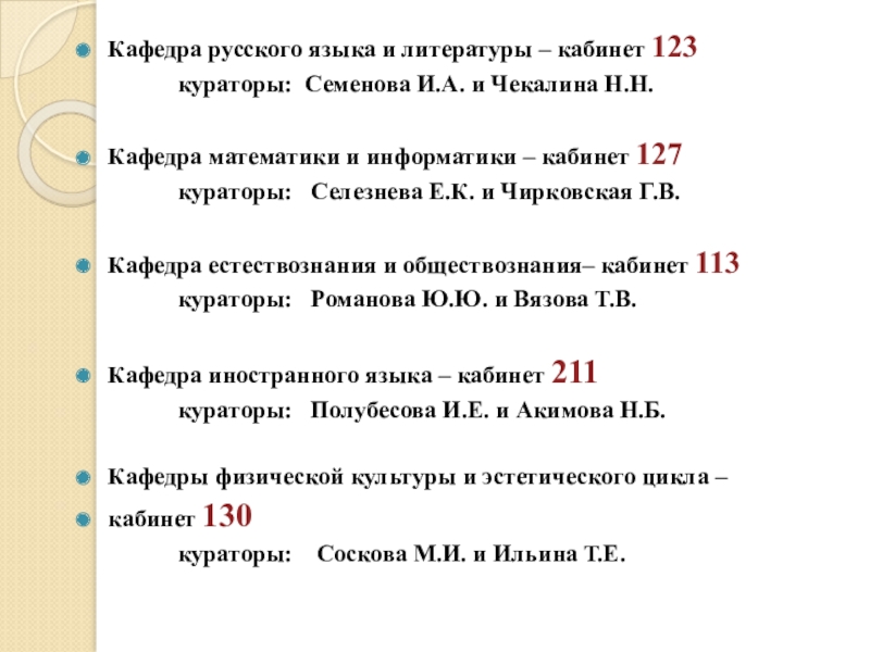 Слайд 13Кафедра русского языка и литературы – кабинет 123